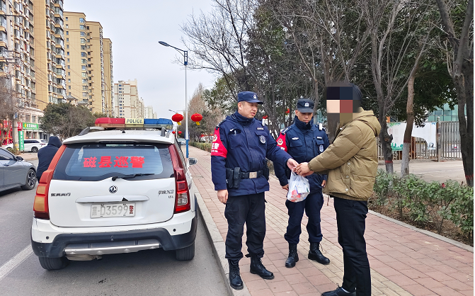 2026年1月16日(大年除夕),磁县公安局特巡警大队在街面正常巡逻时,发现路边有一袋遗落的药品。考虑到药品对患者的重要性,特巡警大队巡逻人员通过就诊码信息多方查询,成功联系上失主。