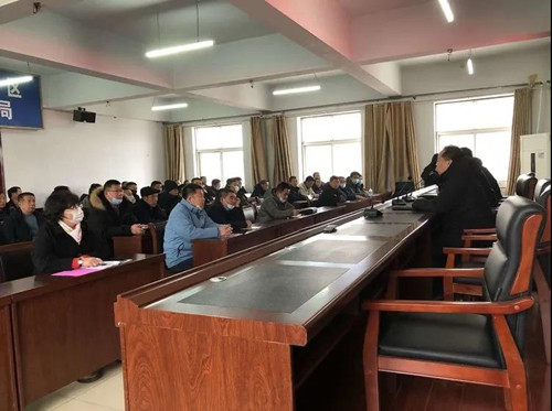 会议首先在局四楼会议室进行,局领导侯万彬讲了大豆玉米带状复合种植项目实施的背景、重要意义和主要技术路径。农业科科长张建英详细讲解了种植技术要点,种植效益及注意事项。