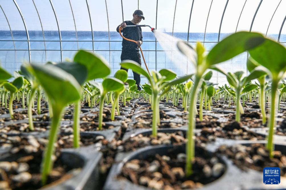 2月4日,在河南省商丘市夏邑县曹集街道一家瓜果育苗基地,村民给瓜苗浇水保墒。 2月4日是二十四节气的立春,各地农民及时开展农事,忙碌在希望的田野上。 新华社发(王高超摄)